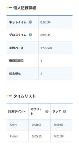 Garminの平均ペースは3:01/kmであったが、公式記録は2:56/km。