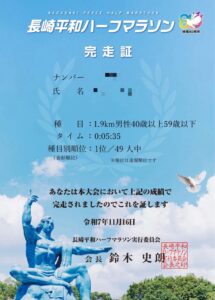完走証は毎年のベイサイドマラソンと違い平和記念像が載っていました。