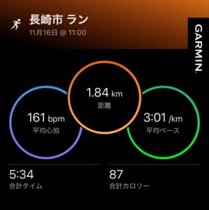 Garminの計測は1.84キロだった。(試走の時とほぼ同じ)