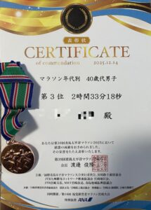 フルマラソンの年代別入賞で副賞をもらったのは初めてでした。