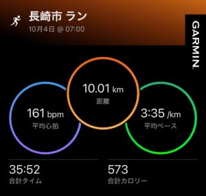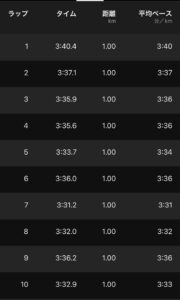 久しぶりに10キロペース走で35分台。