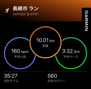 8キロぐらいから少しペースは落ちたが、目標よりは速いペースでゴール。