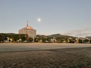 この日は講義を受けている横でV・ファーレンのJ1昇格パレードが開催されていた。