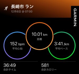 ただ、最初の2キロは3:40/kmで走っているつもりが体が温めってないためかスピードが出ない。