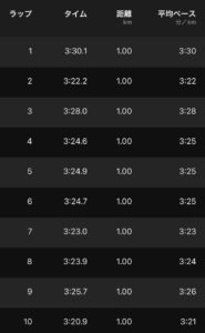 そのまま、そのペースで走ってたら1キロ目は、ちょうど3:30。