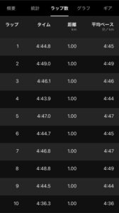 目標は4:50/kmということだったので、そのペースで走った。
