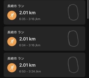 1本目は6:50(3:24/km)で、思ったより走れた。