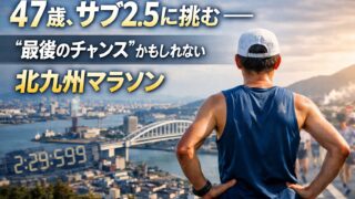 お役立ち情報 サブ2.5(2時間30分切り)に挑む――年齢的に“最後のチャンス”かもしれない北九州マラソン サブ2.5に挑む――年齢的に“最後のチャンス”かもしれない北九州マラソンいつも購読ありがとうございます。2026/2/15の北九州マラソンまで、あと10日程度。北九州マラソンでサブ2.5(2時間30分を切り)を達成の可能性を改めて考えてみま... 2026.02.03 お役立ち情報