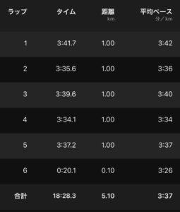 この日は、そんなに速く走るつもりはなかったので、ジョグ用シューズだったので、このペースでも結構きつかった。