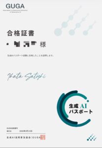 このたび「生成AIパスポート試験」に合格し、合格証を取得しました。