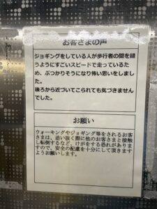 ジョギングは安全配慮すれば、問題ないようですが、人が多い時はスピードを上げるのは危なそうです。