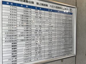 陸上の日本選手権も開催されたことあるようで、この競技場のベスト記録も記載されていました。
