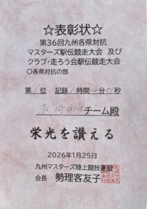 2026年の目標の一つの九州マスターズ駅伝優勝を達成。