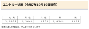 エントリー状況が公開されており、10/19時点では、あとわずかです。