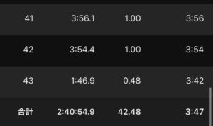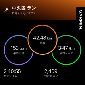 Garminでの42.195キロ時点では、2時間40分はきっていた。