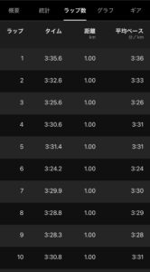 1キロ目は体が温まらず少し遅めだったが、徐々に体も温まりペースアップ。