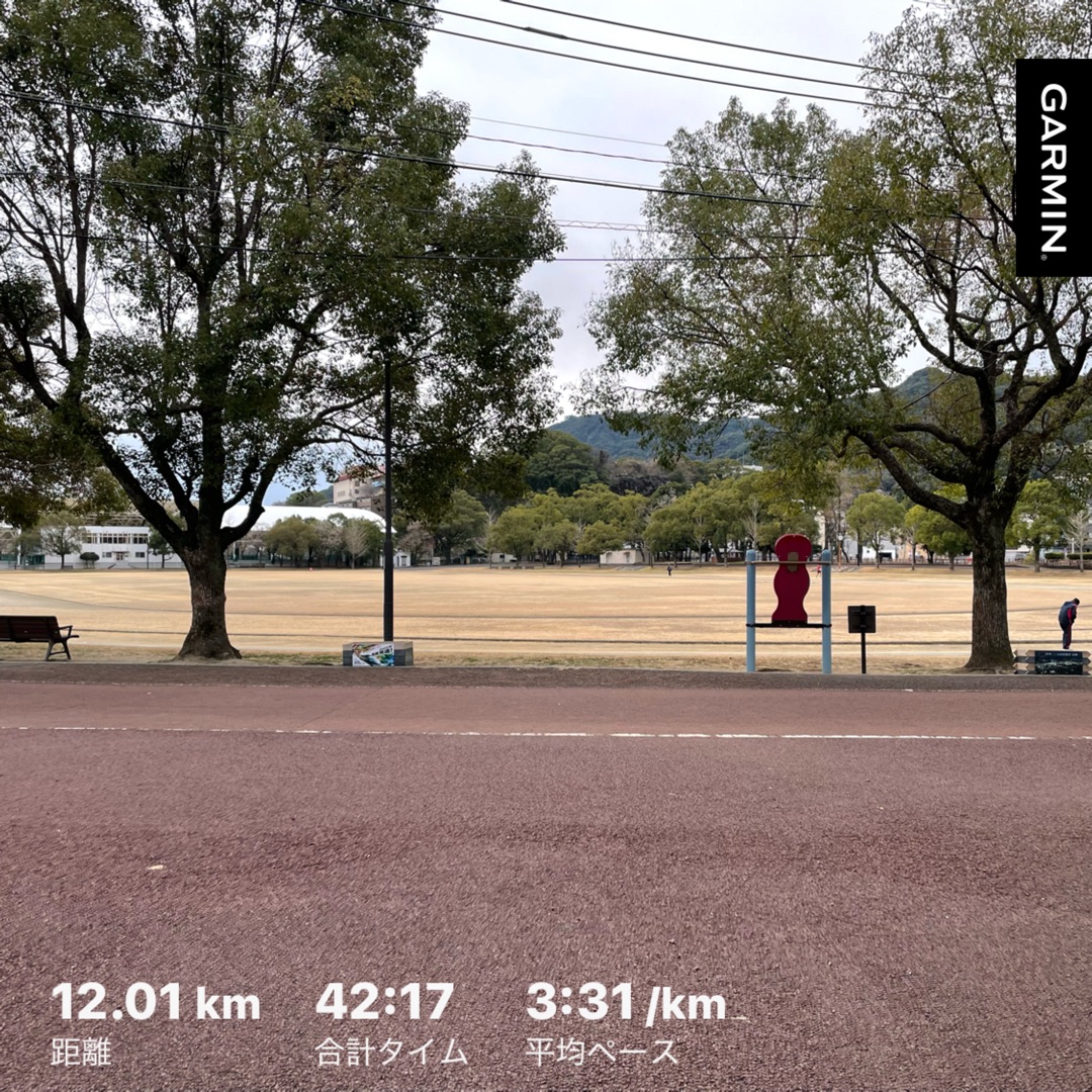 2/15の北九州マラソンの2週間前ということで、この日のメニューは21キロペース走でしたが、12キロでリタイアでした・・・