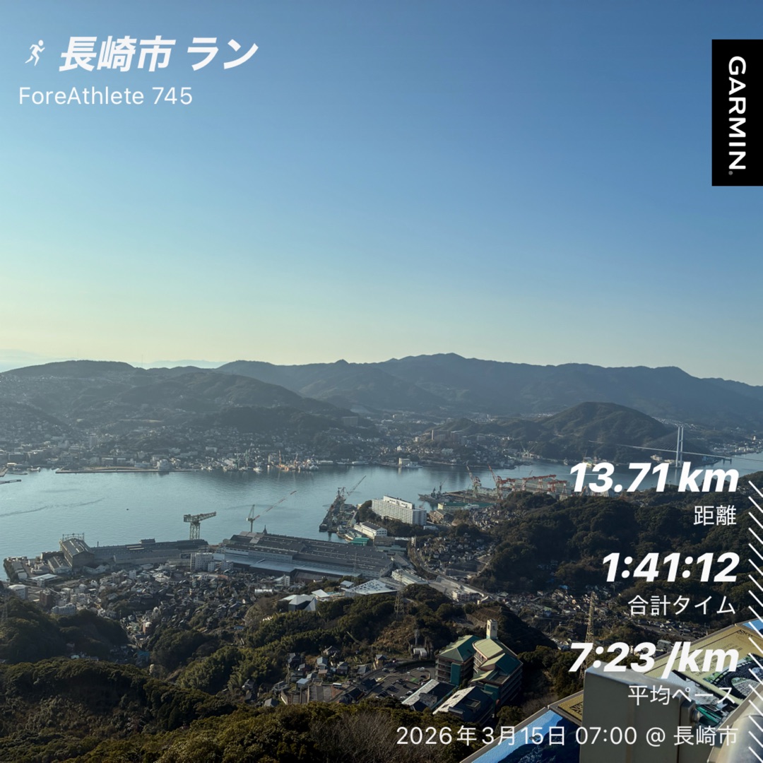 長崎ランニングコース:松山陸上競技場~稲佐山往復:久しぶりに長い距離の坂道を走りました!