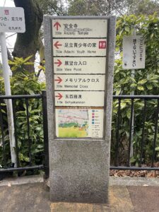 展望台から坂を下ると看板が見えてきます。