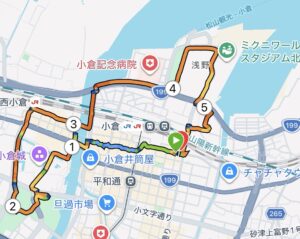 今回は後泊して、翌日は小倉駅付近を散策しながら疲労抜きジョグ、5.6キロ。