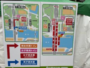 会場の仮設トイレは、混んでいるので、例年通り会場から500m程離れた勝山公園の端の方の公衆トイレを使用。