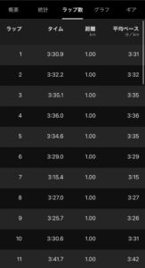 ↓スタートから11キロまでのラップ