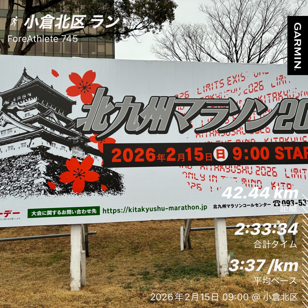 2025年の北九州マラソン(当時の自己ベスト)よりは4分59秒速くてコースレコードは更新!