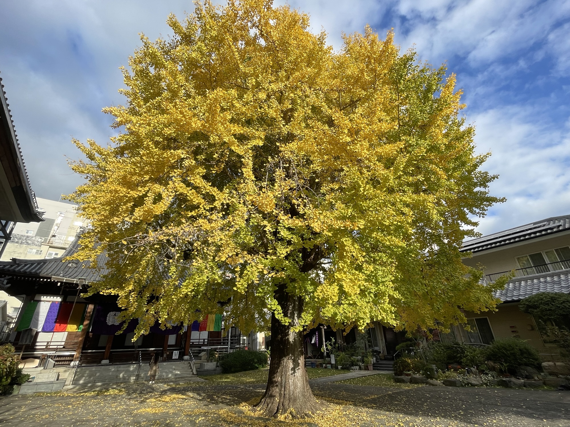 ↓2024年は鮮やかに黄色に色づいて、木の根元には黄色の絨毯が。