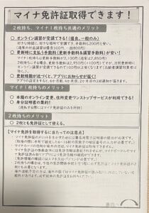 更新の時期が近づいていたのと、免許センターの案内に「マイナンバーカードをお持ちの方は、マイナ免許証の申請が可能です」と書かれていたからだ。