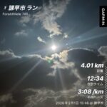 に対して、2026/2/1の長崎県下郡市対抗駅伝選考会(4km)↓では3:08/kmで走れている。