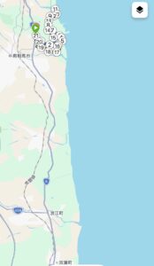 急激な高低差があるのは、海岸線沿いには津波を防ぐための防波堤があり、それを上り下りしてた箇所がほとんどです。