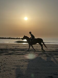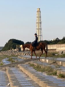 海岸線沿いを走っていたら馬が砂浜を走っていました。
