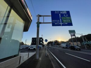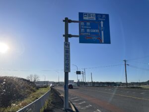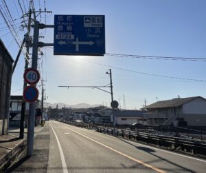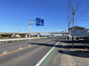 更に進むと堤防道路は左の看板が出てくるので左に曲がります。