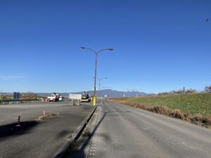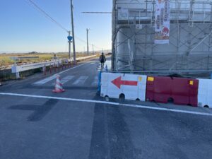進んでいるとコーンが置いてあって、ここから先は通行止めと、工事現場の監督の方に言われました。