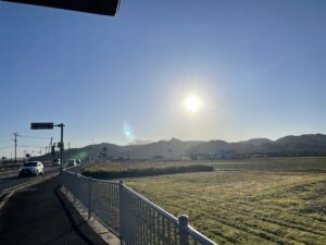 諫早市の看板過ぎて、後ろを振り返ると雲仙市の看板があります。