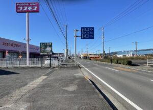 島原道路の森山東ICの交差点がありますが、車両のみしか通行できないので、右方向の下道を通ります。