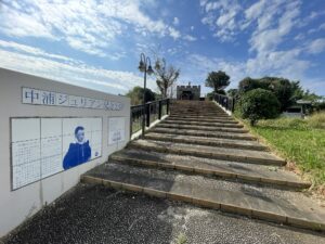 この公園は、江戸時代初期に殉教したキリシタン「中浦ジュリアン(Nakoura Julian)」の功績と信仰を偲ぶために造られました。