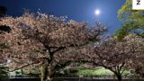 4月9日は長崎原爆の月命日のため、原爆資料館前には、かがり火が炊かれていましたが、今年は桜が長く持ったので、桜とのコレボレーションが見れました。
