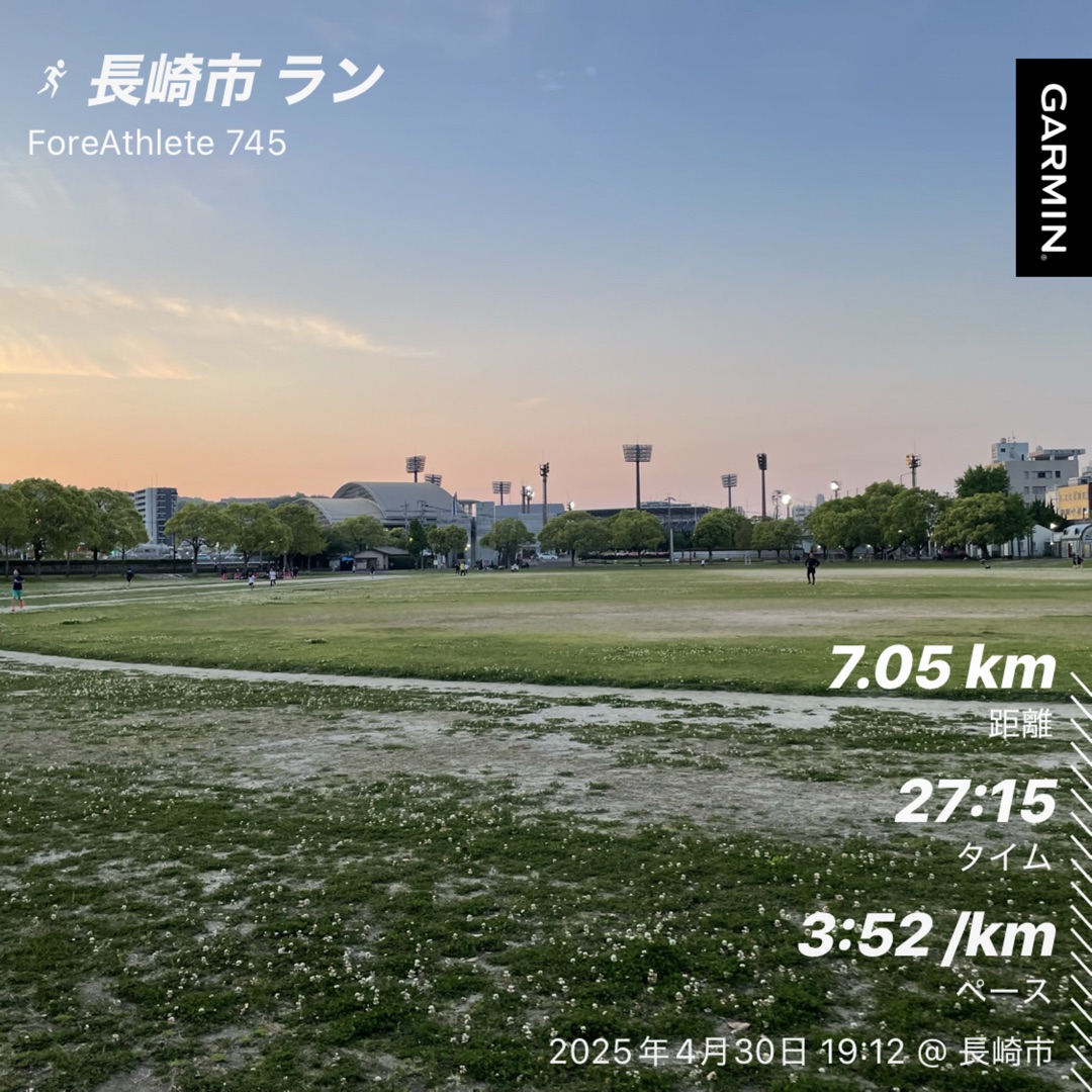 その後、参加者に一人の方が久しぶりに長崎に来て、外をジョグしたいとのことで水辺往復+α(約13キロ)に付き合いました。