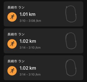 アウトコースを走ったので、3:10/km程度で走ったことになっていた。