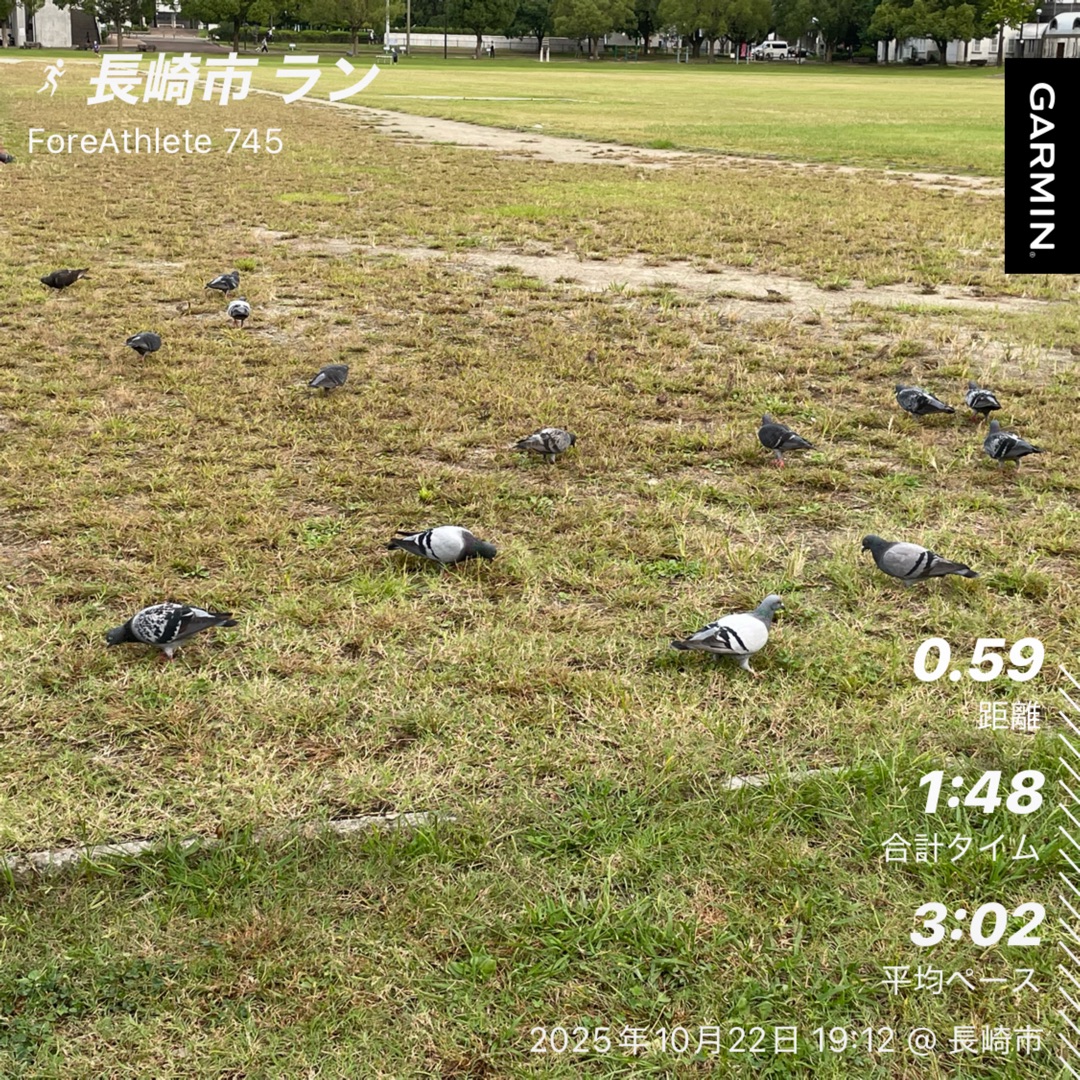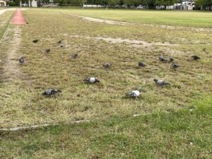 涼しくなったためか、ハト、スズメが競技場内を徘徊しています。