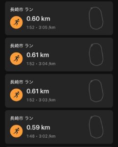 前半の3本は1分52秒で走るのがやっとだった。