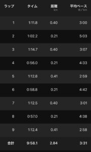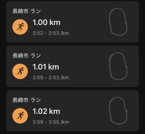 キロ4ペースとのことであったが、本数を重ねるごとに、徐々にペースアップ。