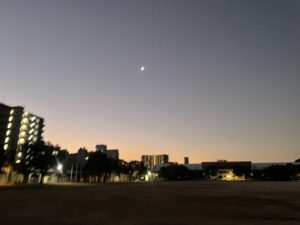 練習前は三日月が出ていた。