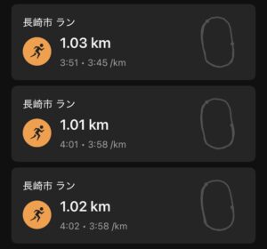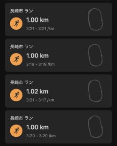 4:00/kmとのことであったが、3本目はペースアップ。