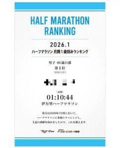 2026年1月のハーフのランキングの結果でした。