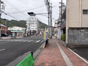 三菱通りを進むとファミリーマートが見えるので、そこを超えてしばらくして右に曲がります。