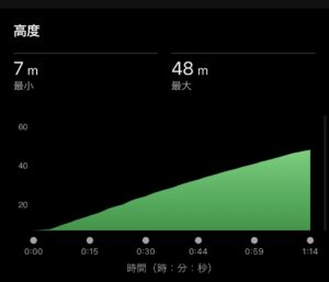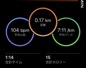 距離は170mで全力でダッシュしましたが、1分14秒で、7:11/kmペース。