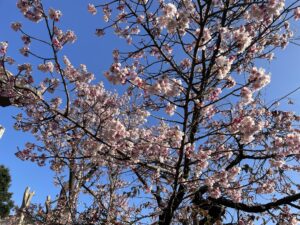 濃いピンク色の花が境内を彩り、冬の澄んだ空気の中で可憐に咲く姿は、他の桜とは違う趣があります。