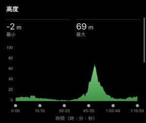 高低差:西山神社の階段が70m弱ありますが、他はフラット。